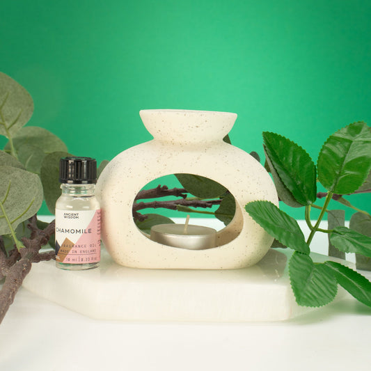 Ceramic Zen Oil Burner - Round Pebble - Speckled Off-White