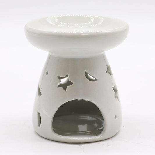 Lrg Classic White Oil Burner - Moon & Star