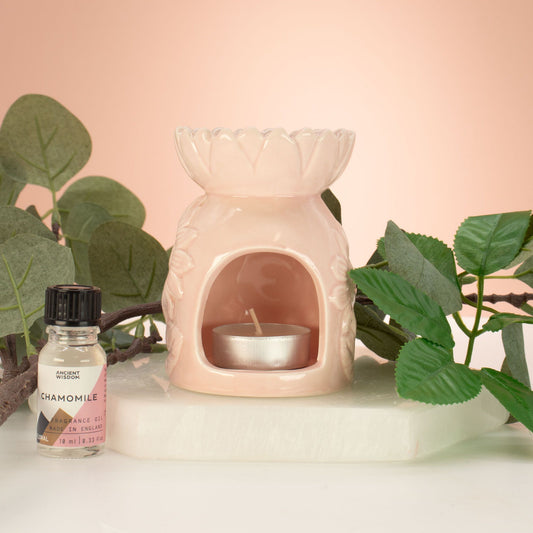 Ceramic Sunflower Oil Burner - Pastel Pink