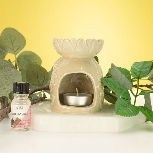 Ceramic Sunflower Oil Burner - Pastel Beige
